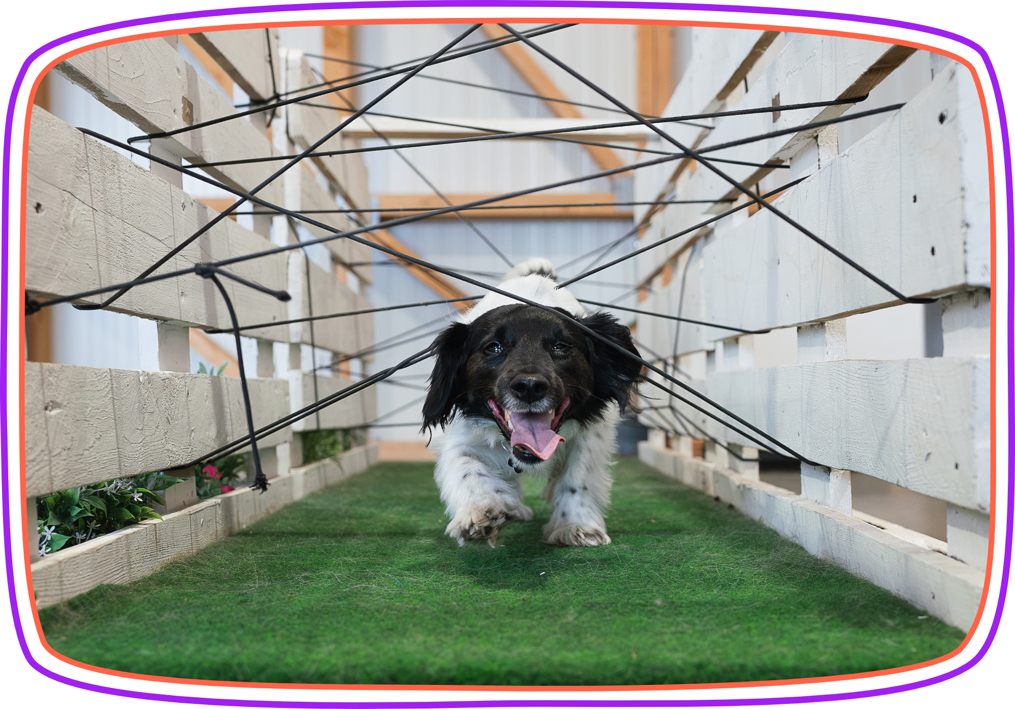 Springen, Slalom, Tunnelspaß: Probier mit deinem Hund unseren Agility Parcours – ideal zum Auspowern und gemeinsame Zeit genießen.